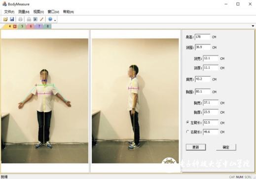 该作品实现了在复杂背景和任意着装情况下的特征点精确定位,从而有效解决了量体图像的合规判定以及高精度量体围度估计等问题。
