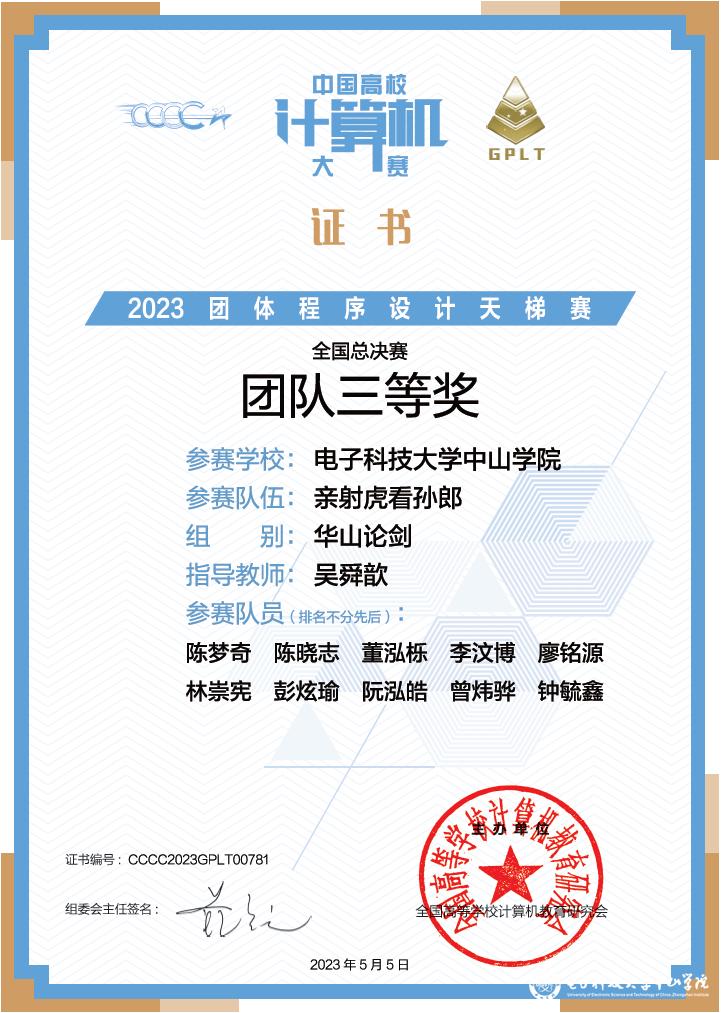 近日,我校龙8-long8(中国)唯一官方网站学生在第8届中国高校计算机大赛-团体程序设计天梯赛中喜获1项全国二等奖、1项全国三等奖和1项广东省三等奖。本次大赛,我校共派出3支队伍,共30位同学参赛。