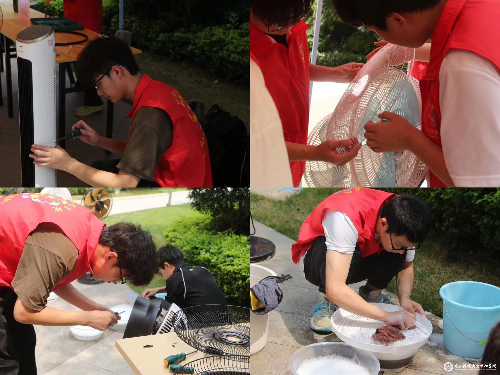 本次活动中,团委志愿者们有序分成两批,给小区居民提供手机壳DIY与洗风扇等免费服务。活动开展过程中,前来参加活动的居民络绎不绝,十分热闹。志愿者们现场教学的手机壳DIY,更是受到了“一老一少”的热捧,客源不断。而在洗风扇活动中,志愿者们分工合作,配合默契,拆、洗、装几个步骤有条不紊的进行,最终顺利完成任务,并获得小区居民的夸赞:“洗的真干净!”“这孩子干活利索!”。