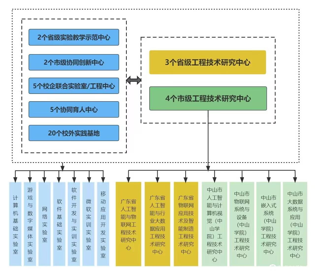 软件工程专业拥有多个省、市级科研及教研平台,教师团队具有良好的科学及教学研究能力,依托省、市级工程技术研究中心及实验教学示范中心,教师团队紧跟学科前沿研究,产出了丰硕的科研及教研成果。近五年在《IEEE Transactions on Image Processing》、《IEEE Transactions on Geoscience and Remote Sensing》等国际主流学术期刊与会议上发表论文五十余篇,获中国仿真学会优秀论文奖;主持包括国家自然科学基金项目、广东省基础与应用基础研究基金项目在内的重大课题十余项;获得国家发明专利二十余项。同时与中国联通中山分公司、中山希道科技有限公司、中山市铧禧电子科技有限公司、广东创智互联科技有限公司等企业建立联合实验室,与企业形成“资源共享、优势互补”的合作关系,并为学生开展科技创新活动提供必要的硬件、软件与场所。