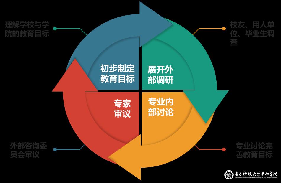 软件工程专业遵循“学生为本、成果导向、持续改进”原则,通过对校友、用人单位和毕业生的广泛调查研究,并且聘请高校教授、企业专家、校友代表成立专业咨询委员会充分了解产业需求,同时结合学校和学院的教育目标,形成了以用人单位需求驱动,以软件工程行业人才培养为目标的科学的专业培养目标、核心能力制定流程。